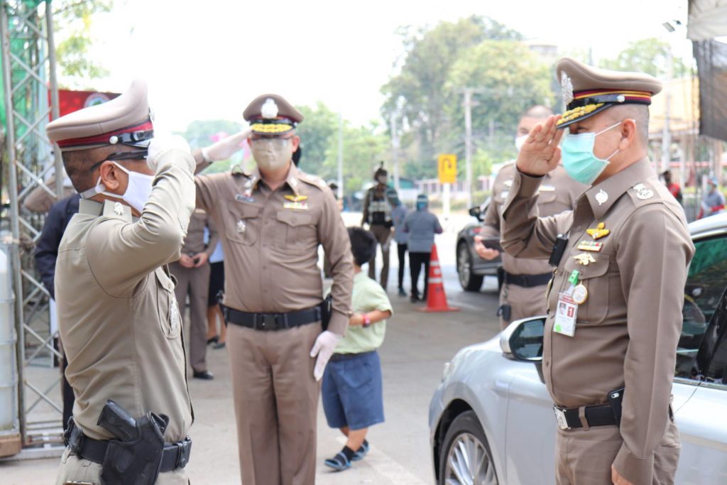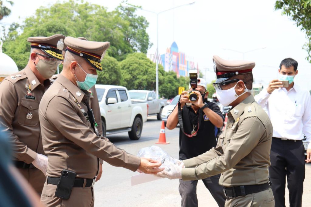 และในโอกาสนี้ พล.ต.ท.อำพล บัวรับพร ผบช.ภ.๑ ได้มอบเงิน พร้อมแว่นตา Face Shield ให้แก่ จนท.ผู้ปฏิบัติประจำจุดคัดกรองฯ เพื่อเป็นขวัญและกำลังใจในการปฏิบัติหน้าที่ต่อไป