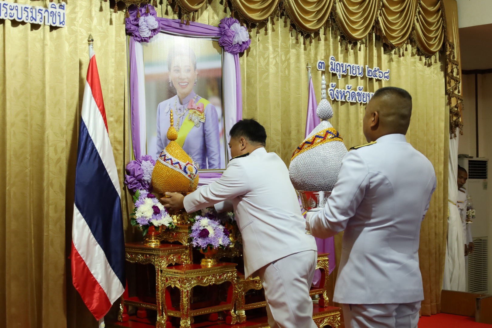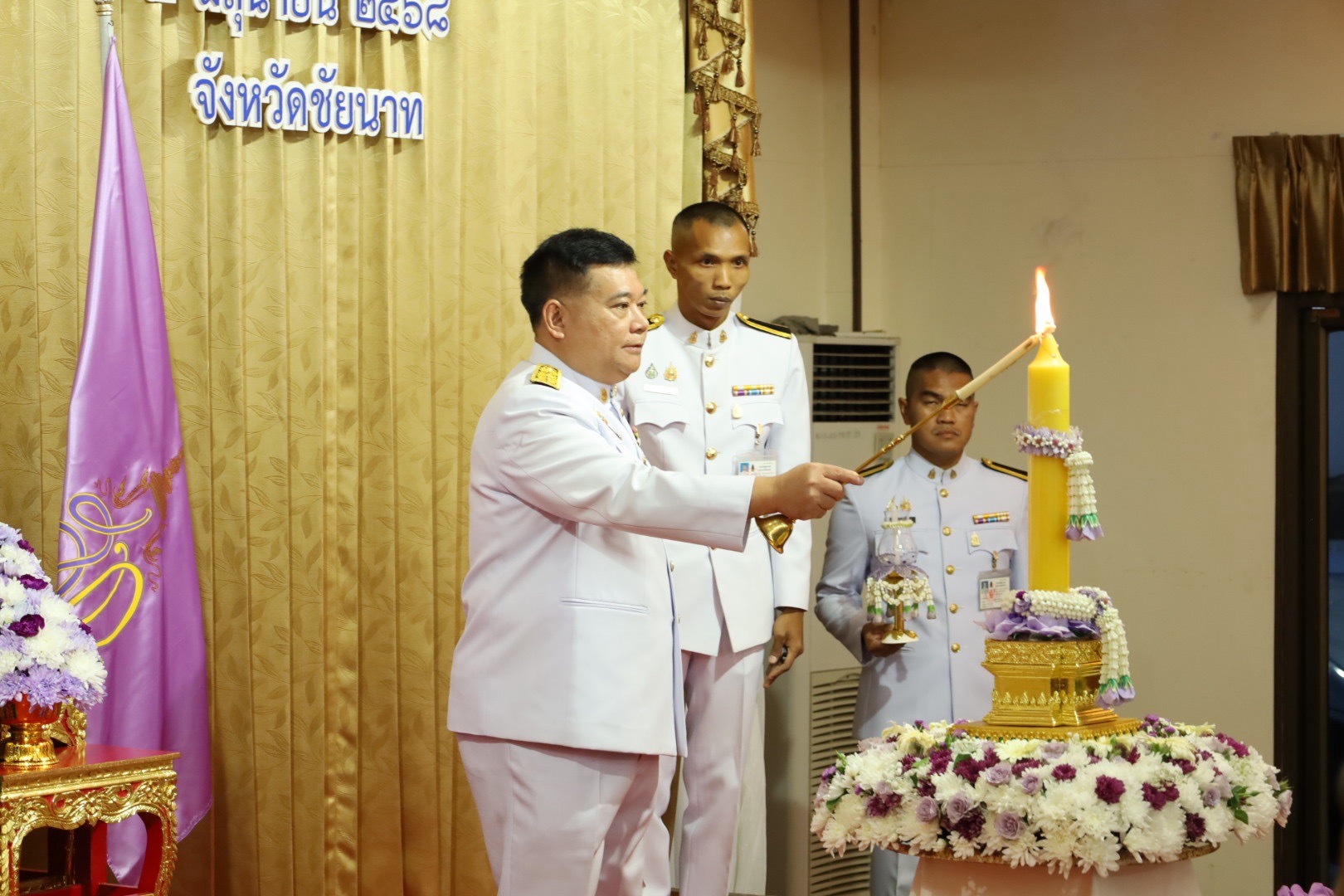 วันที่ 3 มิ.ย.2568 เวลา 19.00 น. นายนที มนตริวัต ผู้ว่าราชการจังหวัดชัยนาท ประธานในพิธีพร้อมด้วย พล.ต.ต.สุรวุฒิ แสงรุ่งเรือง ผบก.ภ.จว.ชัยนาท และ ข้าราชการในสังกัดจังหวัดชัยนาท ร่วมพิธีจุดเทียนถวายพระพรชัยมงคล สมเด็จพระนางเจ้าฯ พระบรมราชินี เนื่องในโอกาสวันเฉลิมพระชนมพรรษา