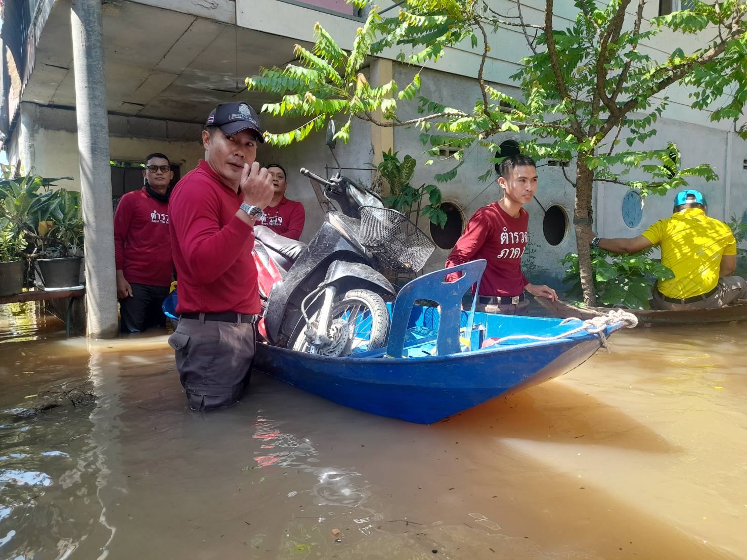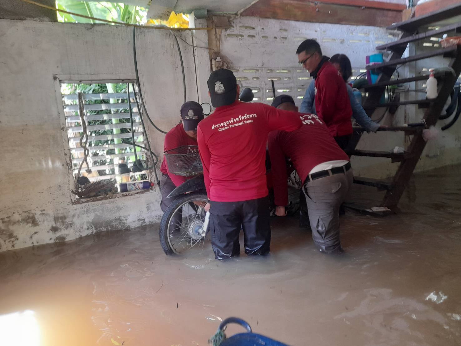 วันที่ 20 ตุลาคม 2568 เวลา 10.00 น. พล.ต.ต.สมพล วงศ์ศรีสุนทร ผบก.ภ.จว.ชัยนาท พ.ต.อ.นรากร บุญครอบ รอง ผบก.ภ.จว.ชัยนาท พ.ต.อ.สาโรจน์ ลิ้มวสุไพศาล ผกก.สภ.สรรพยา มอบหมายให้ พ.ต.ท.ธรรมวัฒน์ เกียรติก้องกำจาย สวป.สภ.สรรพยา พร้อมกำลังเจ้าหน้าที่ตำรวจ ลงพื้นที่ให้ความช่วยเหลือประชาชนในพื้นที่ประสบอุทกภัย ภายหลังระดับน้ำในหลายพื้นที่เริ่มลดลง แต่ล่าสุดระดับน้ำกลับเพิ่มสูงขึ้นอีกครั้ง ส่งผลให้หลายพื้นที่ยังคงได้รับผลกระทบ และต้องเฝ้าระวังสถานการณ์อย่างใกล้ชิด
